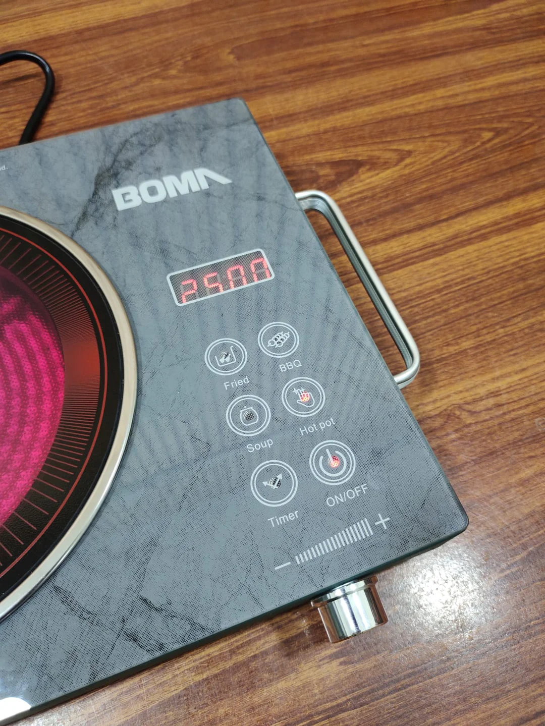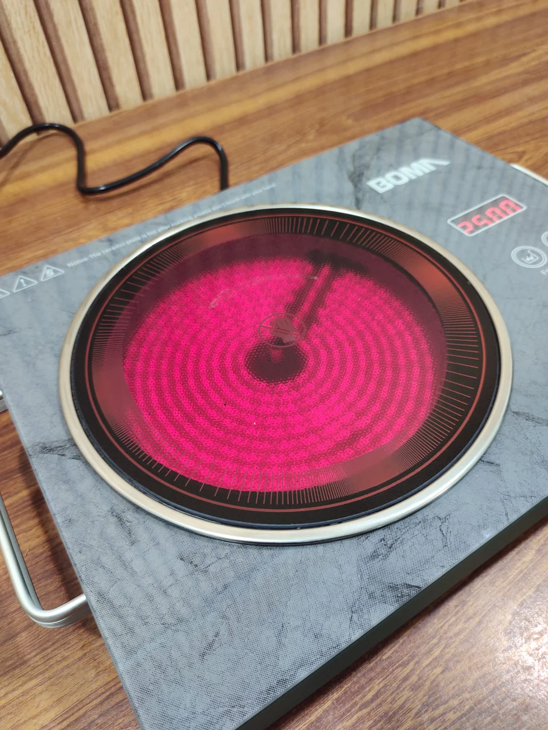 - when infrared cooker switch-on regime, heating element in cooker can supply 500″c—600″c high temperature in seconds